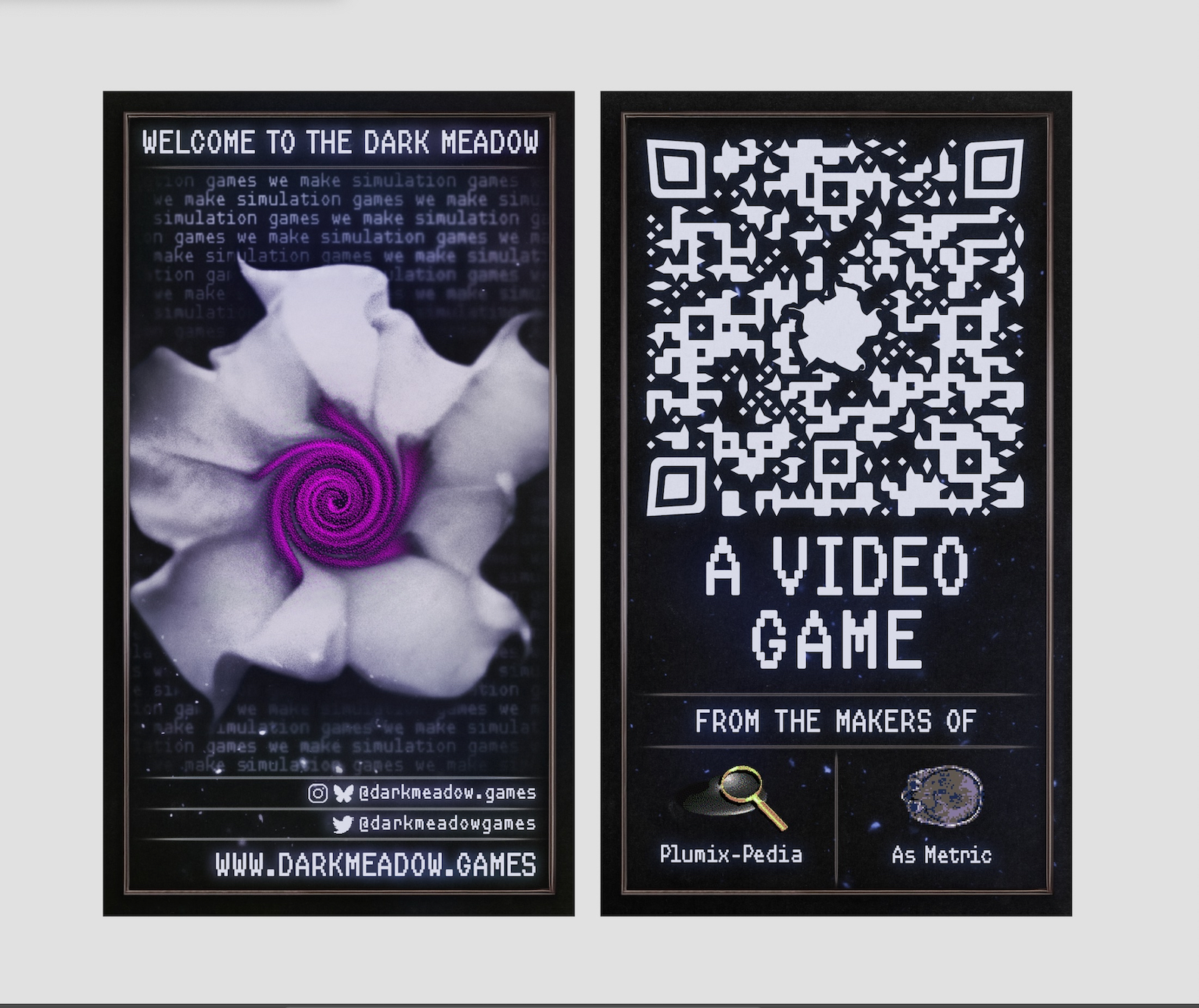 This business card was primarily to act as a catch-all for Dark Meadow info in relation to TBC, as we were showing the two games pictured on it “Plumix-Pedia” and “As Metric” as a form of like, “this is what we’ve done before in much less time… you should check out the thing we’ve spent orders of magnitude more time on that’s coming up at Some Point!